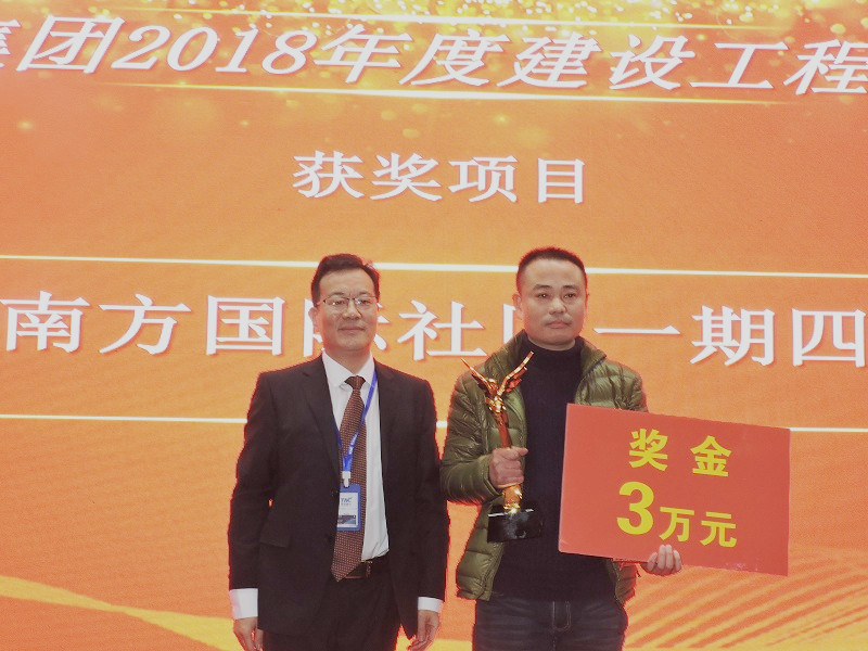 “2018年度建設(shè)工程天馬杯銀獎”:“中冶南方國際社區(qū)一期四標(biāo)段”;頒獎人:集團公司總經(jīng)理高昌盛