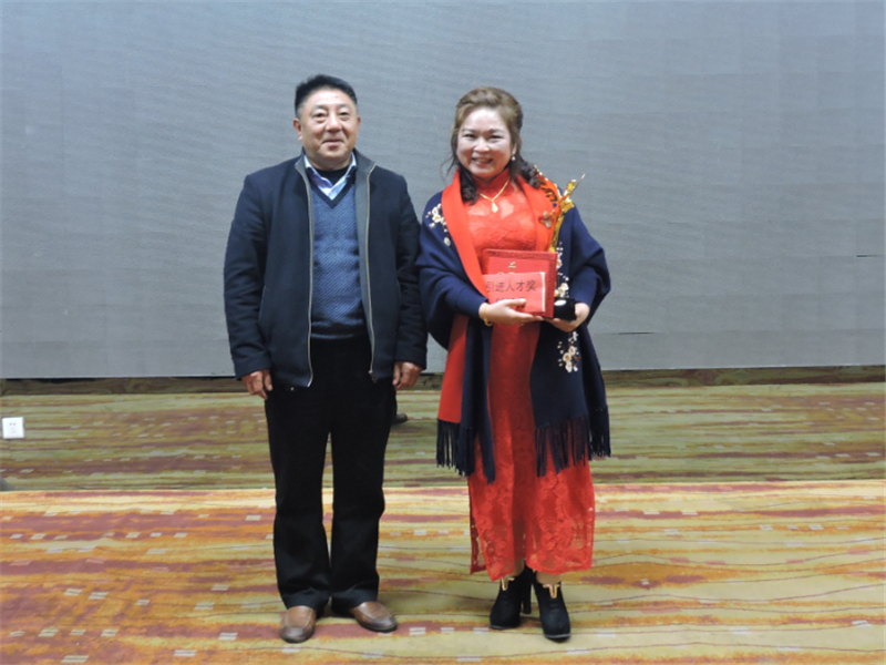 天馬建設(shè)集團“2016年度引進人才獎”:集團總工程師余勝利。領(lǐng)獎代表為萬燕。頒獎人:街道謝主任。