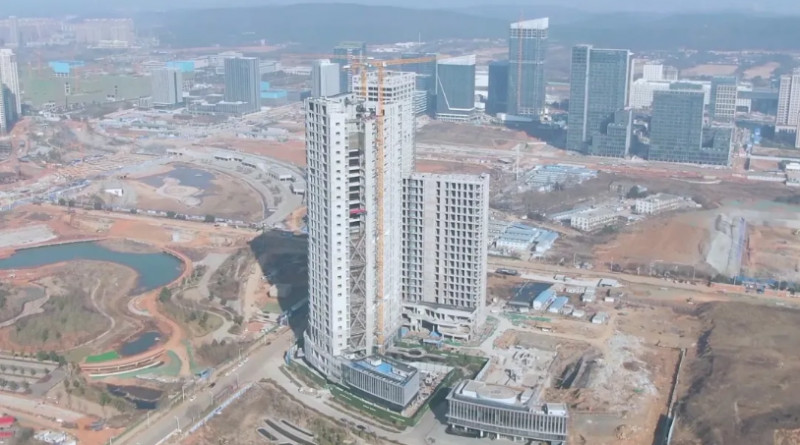 世界城·創(chuàng)世界是天馬建設(shè)在建的最大的一個項目,占地面積4.1萬方,總建筑面積32.2萬方,其中1號樓屬于超限超高異型建筑,總建筑面積5.4萬方,總高度有153.8m。