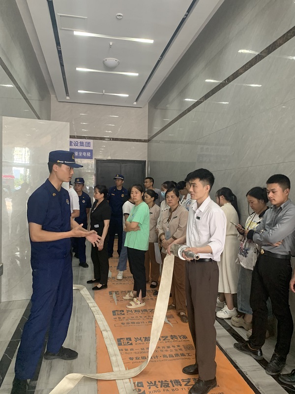 在生動有趣的消防安全培訓結(jié)束后,消防支隊專家與集團全體員工到大廈一樓進行實地演練,消防支隊專家們逐一介紹滅火器材和消防水帶的使用方法及相關(guān)注意事項。集團員工在認真聽完介紹后主動實踐,將理論知識內(nèi)化于心,實踐于行。